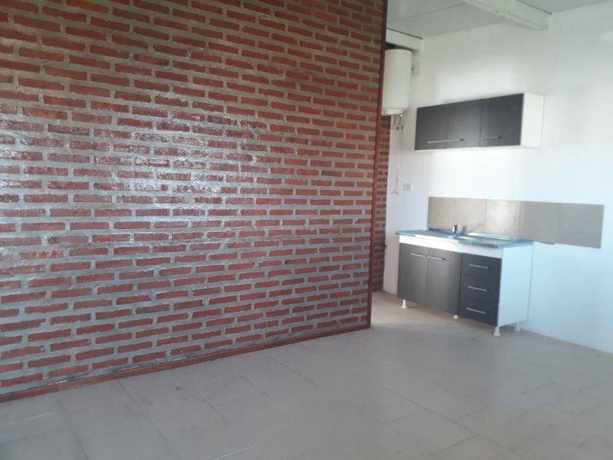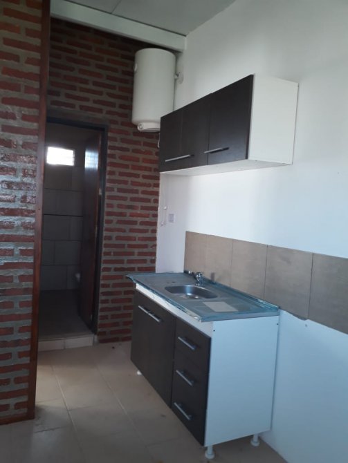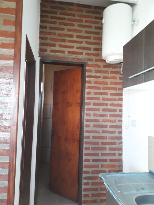 Departamento tipo casa con patio atrás, 1 dormitorio, cocina comedor y baño. Espacio al frente en común y entrada para autos.